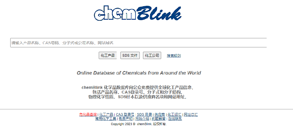 化工品、CAS登录号、分子式和分子结构、 物理化学性质、SDS样本以及供应商名录和网站地址http://www.chemblink.com/indexC.htmhttp://cheman.chemnet.com/dict/zd.html